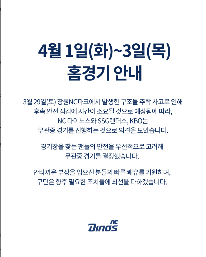 사고가 발생한 NC 다이노스 구단은 즉각적인 조치를 취했습니다: